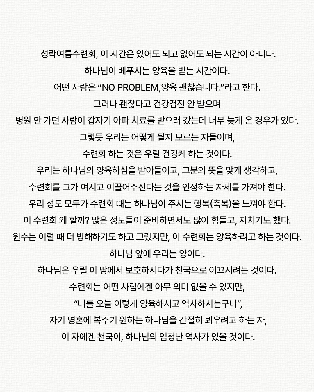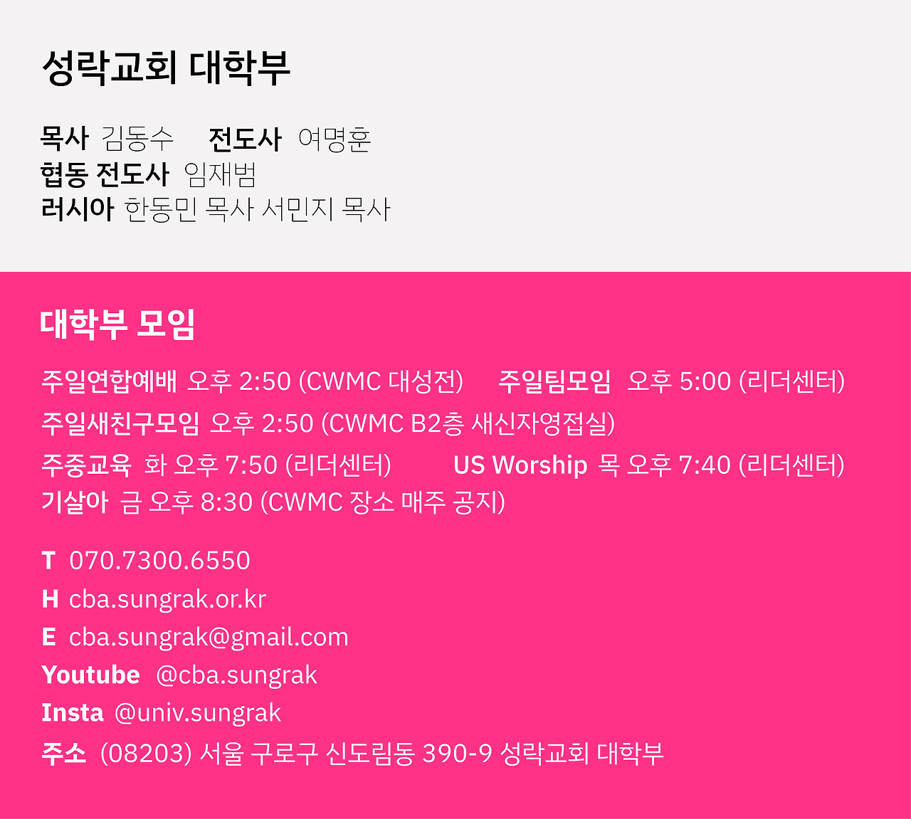 방학을 은혜롭고 알차게 보낼 수 있도록 준비했습니다! 재학생만 하기는 아쉬워서 졸업생도 참여 가능한 시간으로 이사도 했습니다!