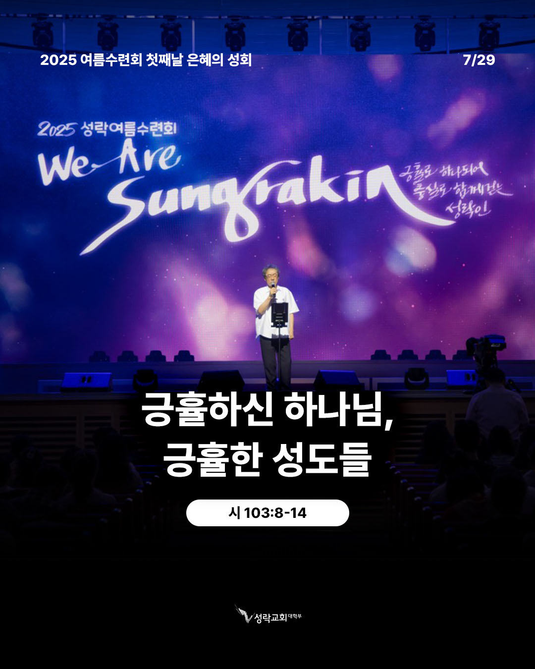 바쁨과 피곤함 가운데서도 은혜를 사모하며 세계센터 대성전 가장 앞자리에 앉아